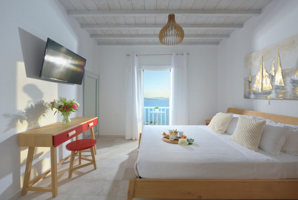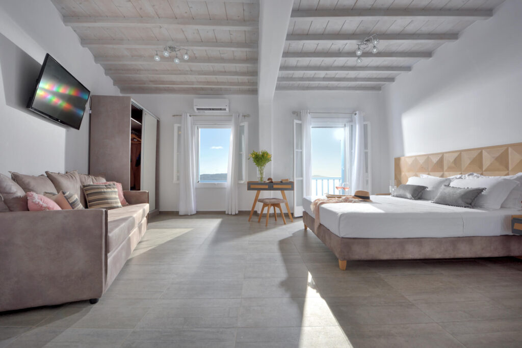 This Cycladic-style suite offers an outdoor hot tub and Aegean Sea view. It consists of 2 bedrooms, living area, kitchen, and a private bathroom with a spa bath, free toiletries. Air conditioning, a flat-screen TV, and free Wi-Fi are also available. Enjoy a delightful start to your day with our optional breakfast offering at just 40€ per day for two persons.